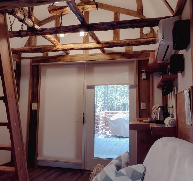 Immerse yourself in pure relaxation with our hot tub, equipped with a continuous filtration system. Let the soothing bubbles and serene forest view melt your worries away.